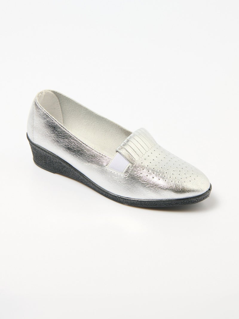 Mocassins élastiqués confort en cuir - Afibel - Argenté