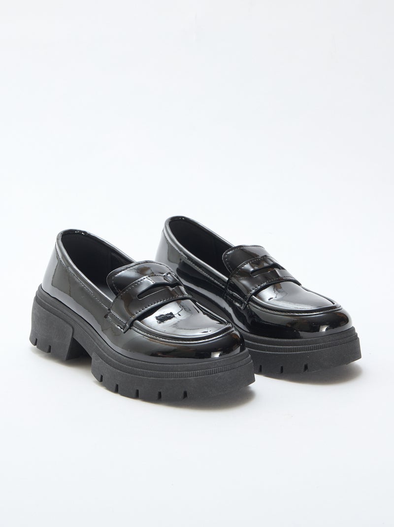 Mocassins vernis avec semelle crantée - Noir