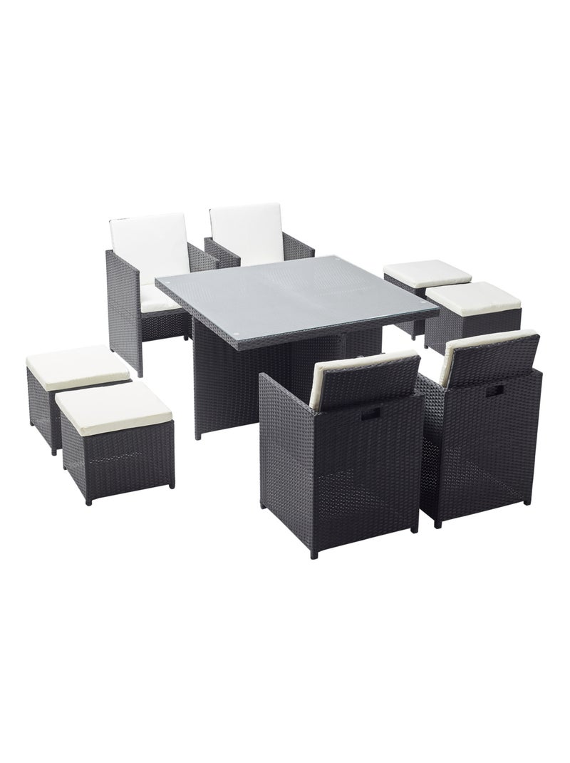 MONACO Table et chaises 8 places encastrables en résine noir-blanc - Noir Blanc