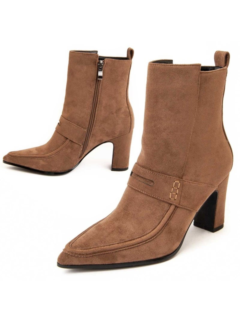 Bottine à Talon Matière Synthétique Et Textile Montevita - Marron