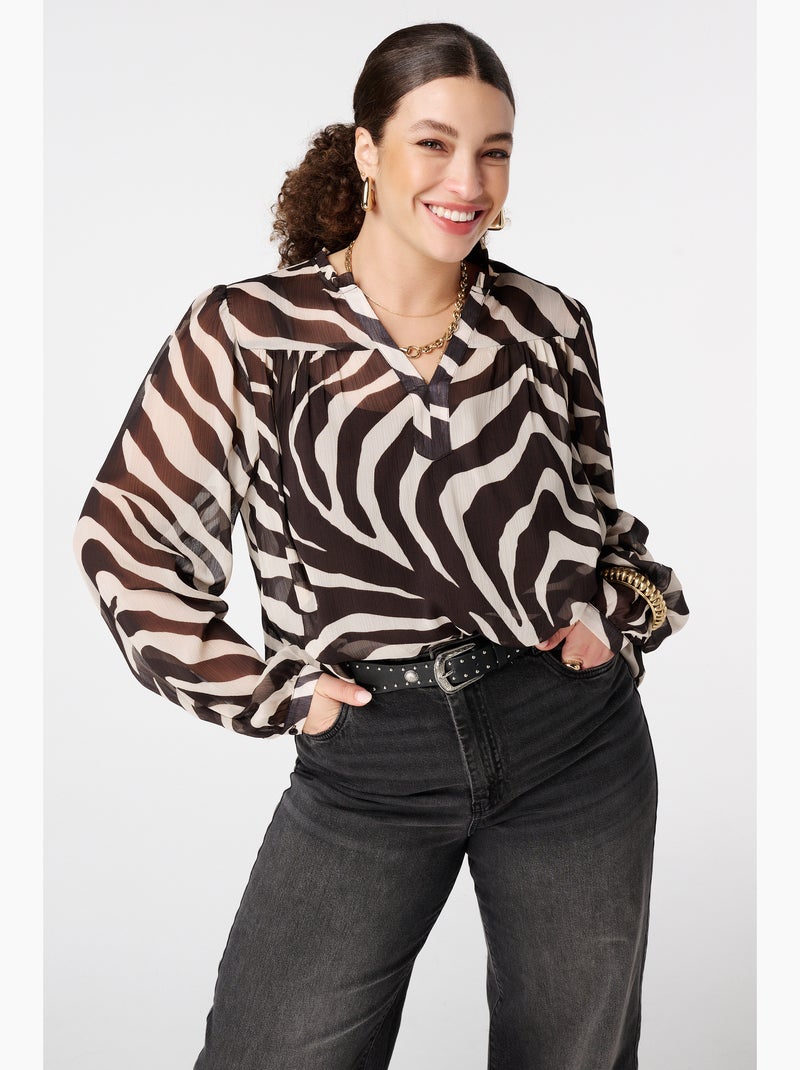 MS MODE Chemisier Blouse à imprimé animalier - Marron