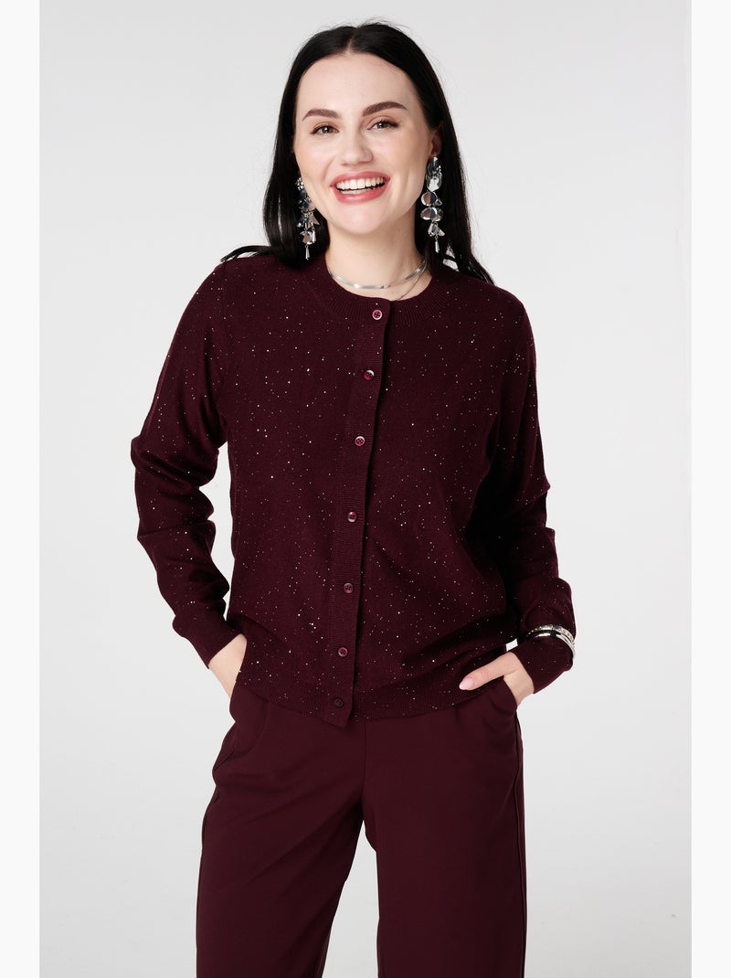 MS MODE Gilet Cardigan finement tricoté avec mini paillettes - Bordeaux