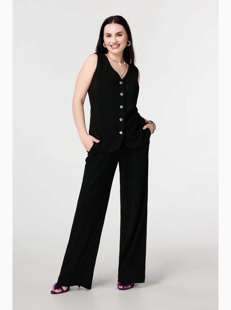 MS MODE Pantalon Pantalon avec lurex et taille élastique - Noir