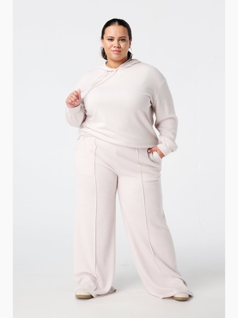 MS MODE Pantalon Pantalon droit à taille élastique - Beige/Blanc