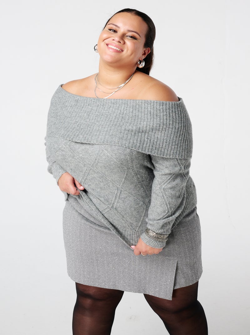 MS MODE Pull Pull épaules dénudées à motif torsadé - Gris