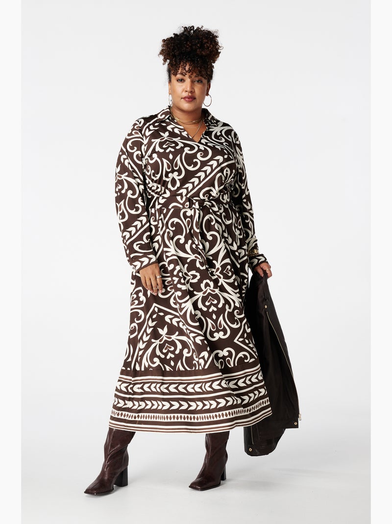 MS MODE Robe Robe à imprimé cachemire avec ceinture - Marron caramel
