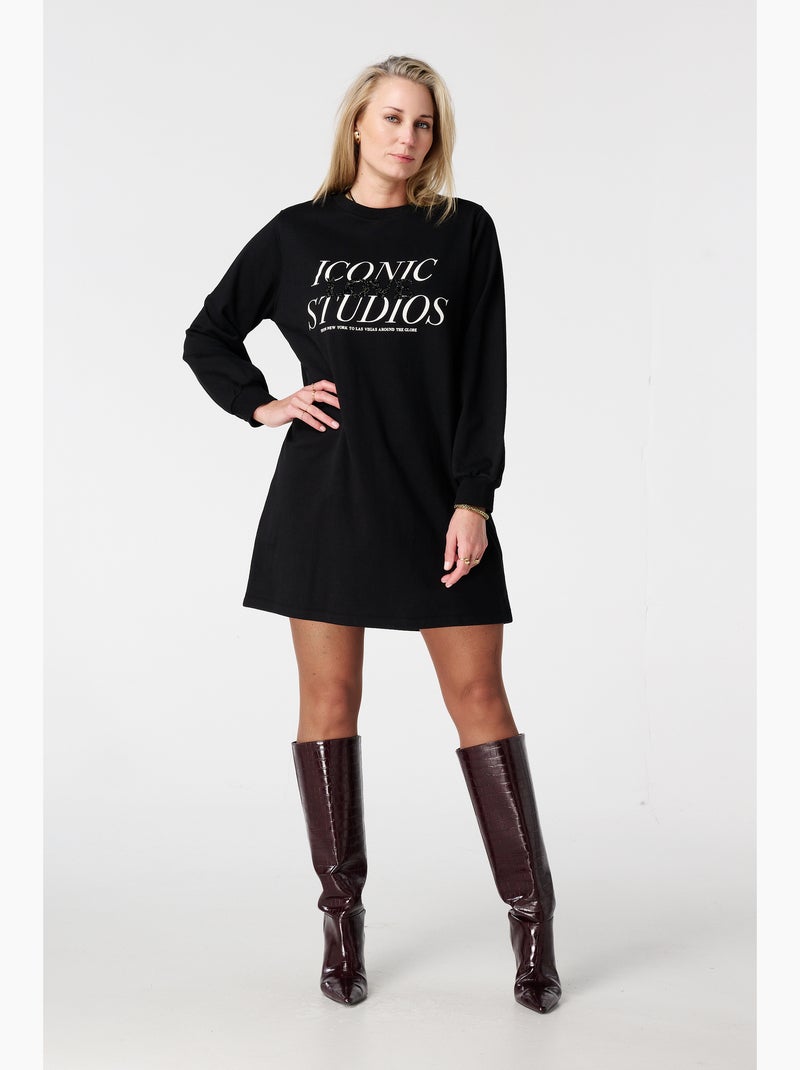 MS MODE Robe Robe-pull avec texte pailleté - Noir