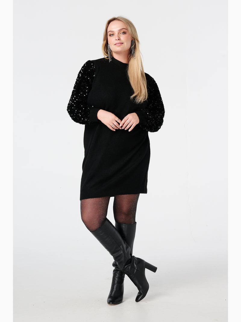 MS MODE Robe Tunique en maille avec manches à sequins - Noir