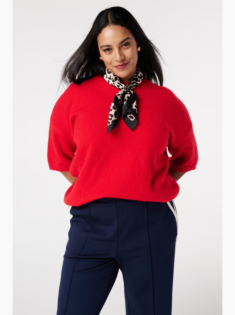MS MODE Top Top tricoté à manches courtes - Rouge