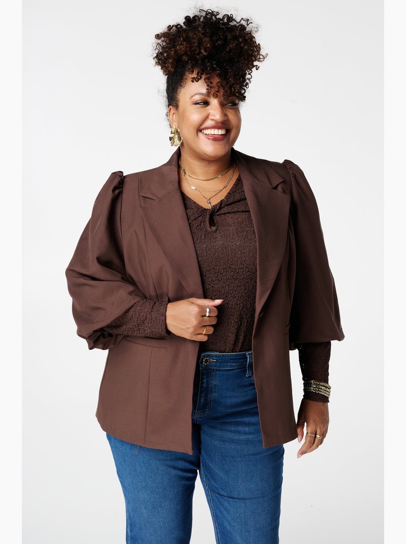 MS MODE Veste Blazer à manches bouffantes courtes - Marron foncé