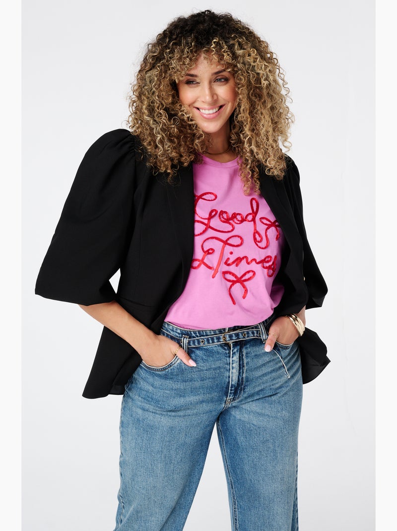 MS MODE Veste Blazer à manches bouffantes - Noir