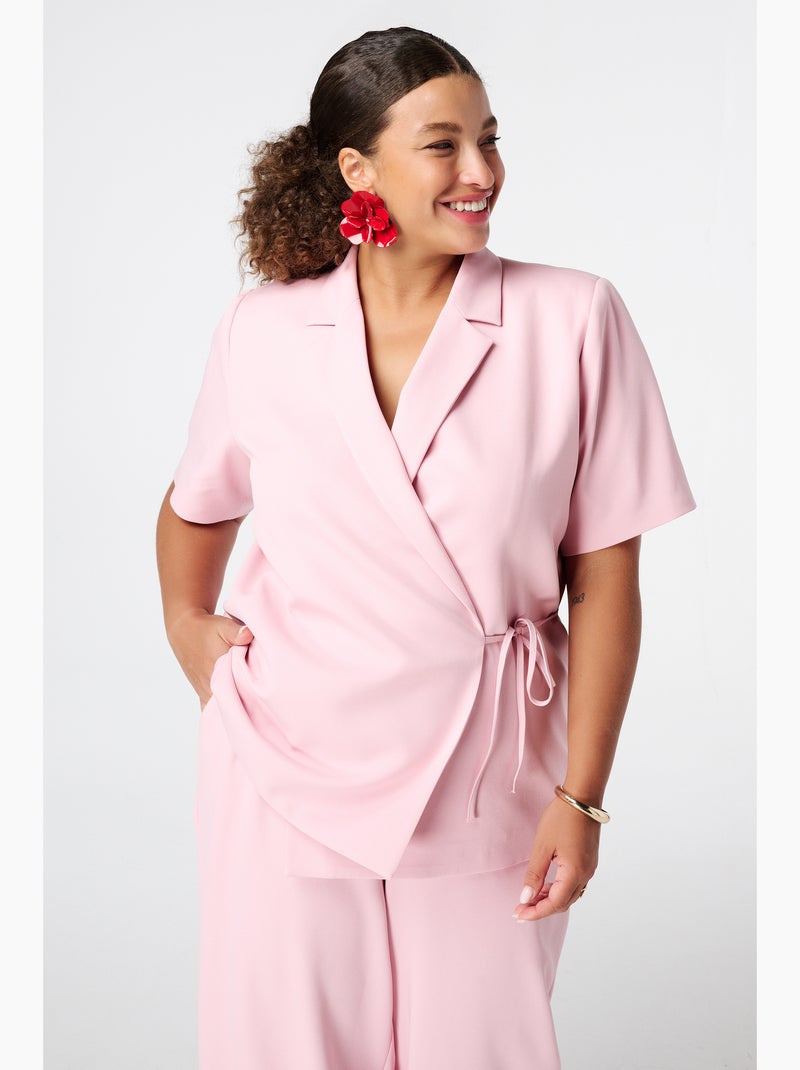 MS MODE Veste Blazer à revers manches courtes - Rose clair