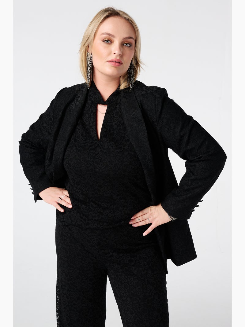 MS MODE Veste Blazer cintré en dentelle - Noir