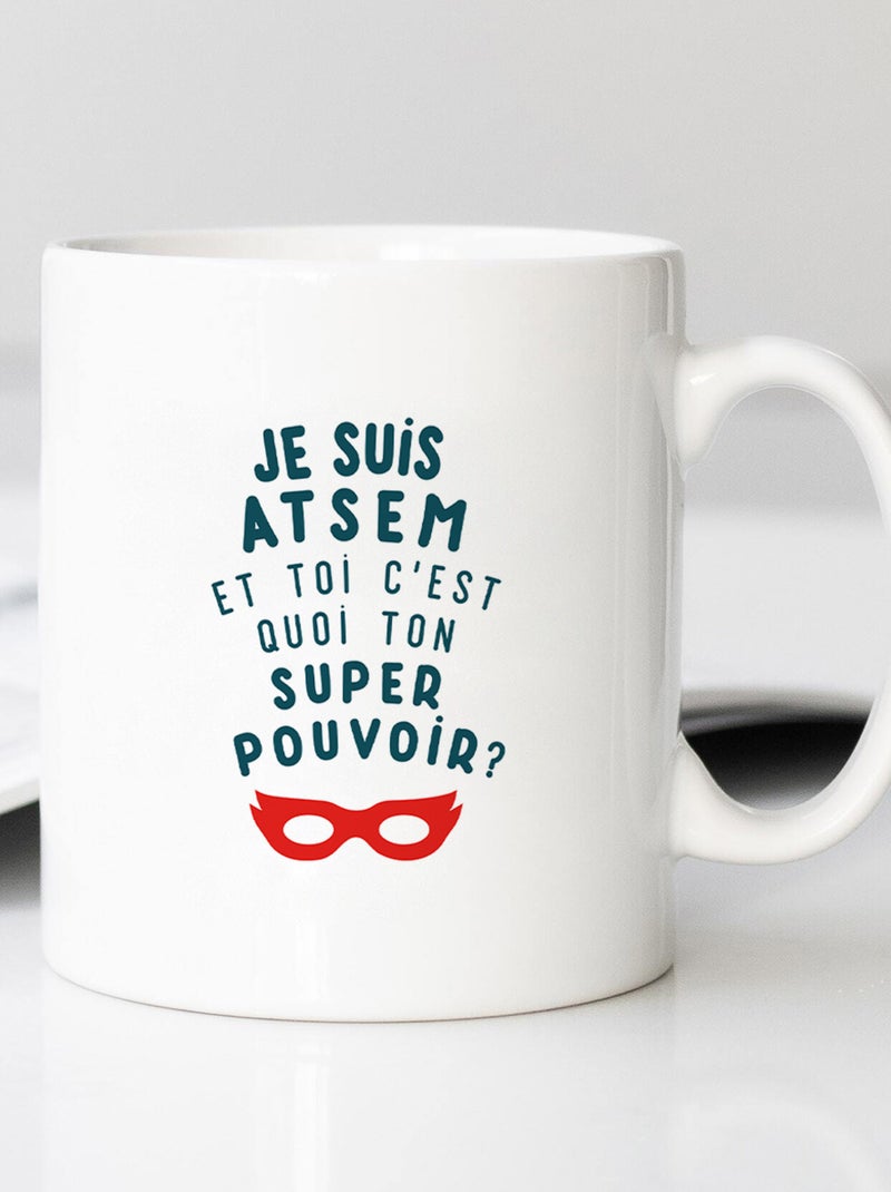 Mug JE SUIS ATSEM ET TOI C'EST QUOI TON SUPER POUVOIR ? - Blanc