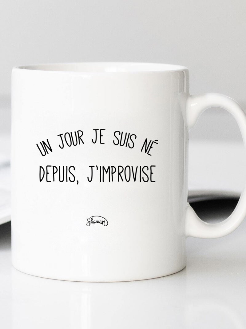Mug UN JOUR JE SUIS NÉ DEPUIS, J'IMPROVISE - Blanc