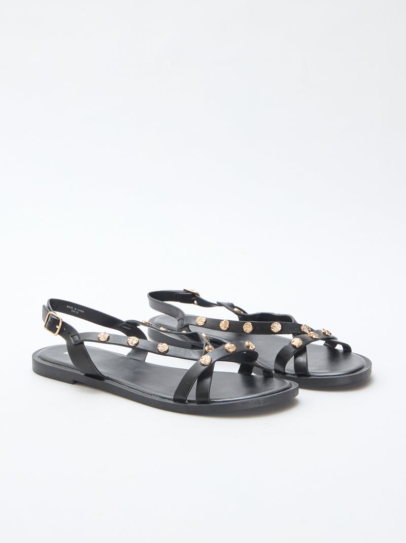 Mules multi-brides à clous brillant - Noir