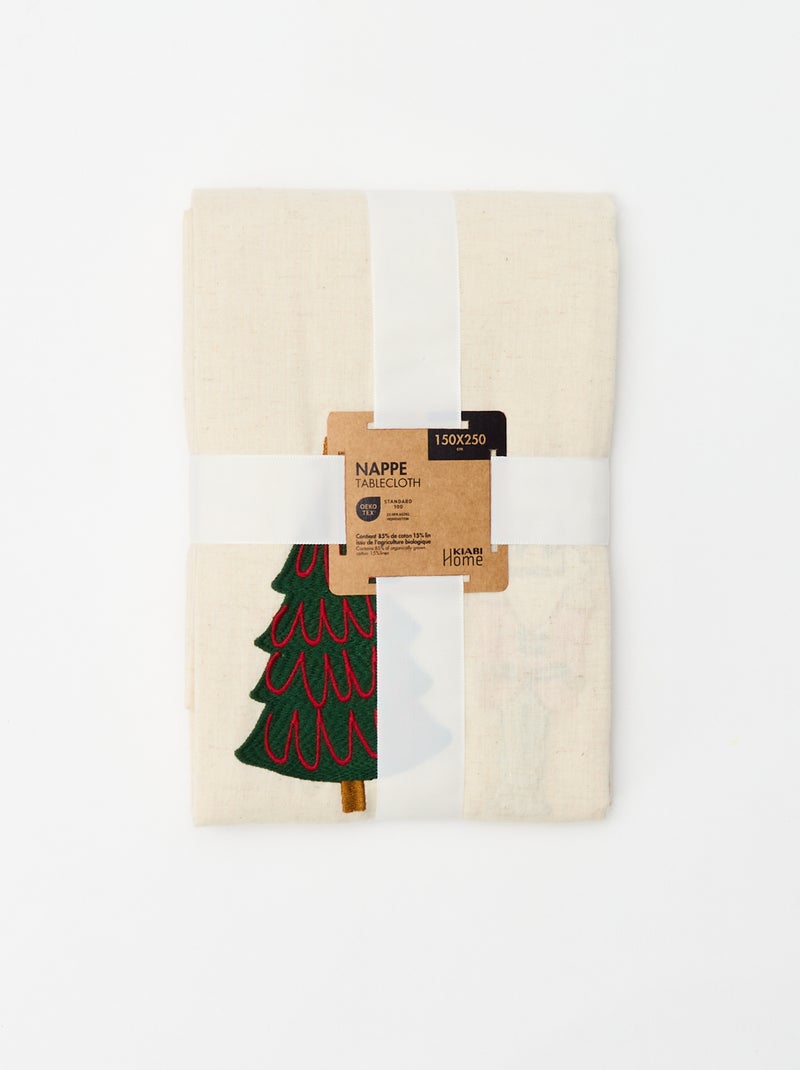 Nappe de table imprimé Noël en coton et lin 150x250 cm - Beige