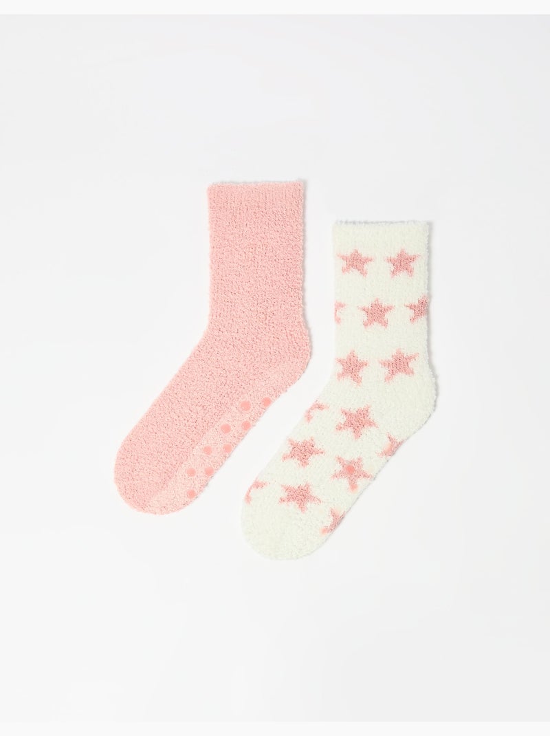 Pack 2 paires de chaussettes antidérapantes, MO Fashion - Blanc