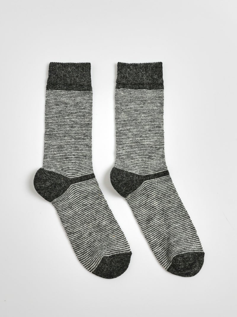 Paire de chaussettes rayées chaudes avec laine - Gris