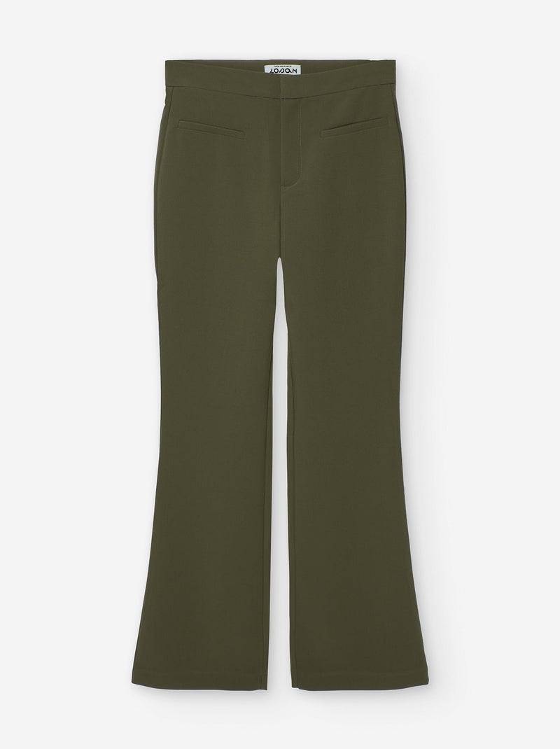 Pantalon à jambe large en sergé avec poches décoratives - Vert foncé