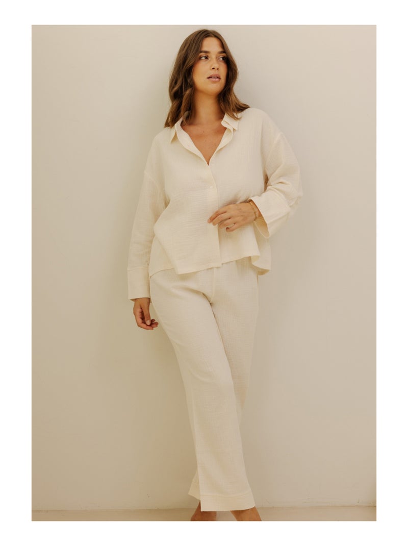 Pantalon en gaze de coton Cécily - Beige
