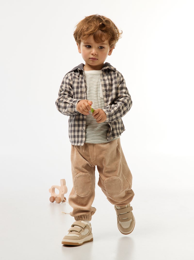 Pantalon en velours côtelé avec taille élastiquée - Beige