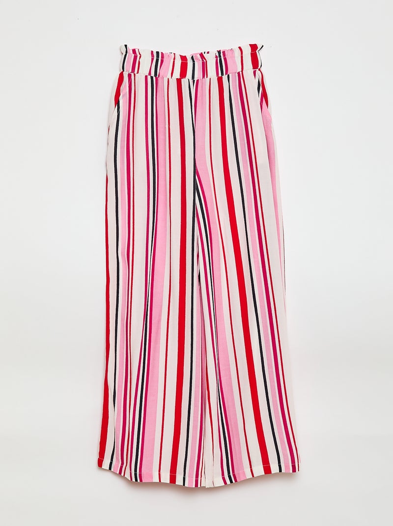Pantalon large à motif avec taille élastiquée - Blanc