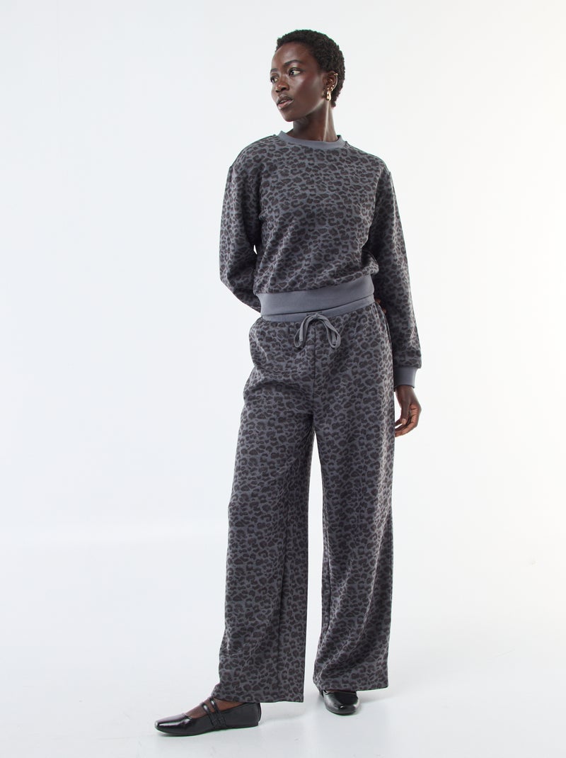 Pantalon large doudou léopard - Gris