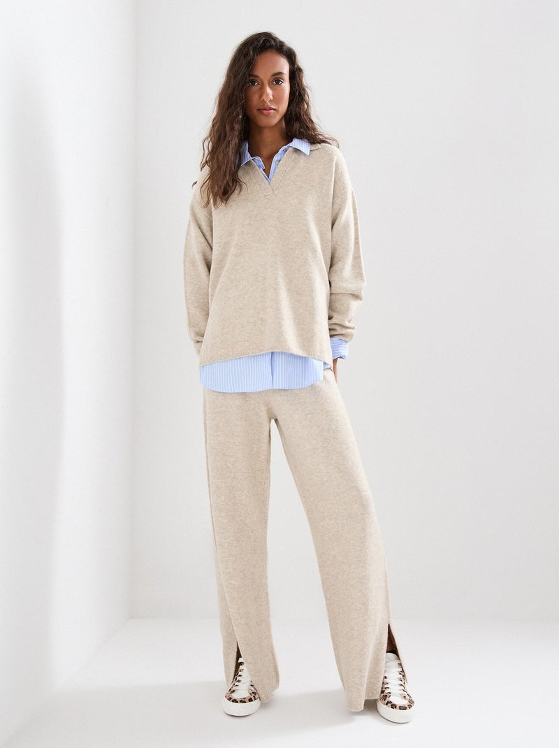 Pantalon tricoté avec laine, MO Fashion - Beige