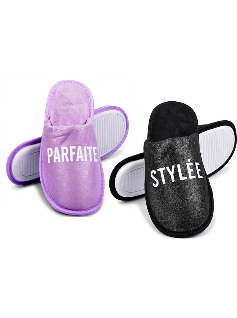 Pantoufles Femme Lurex Glitter Pack de 2 Paires - Noir