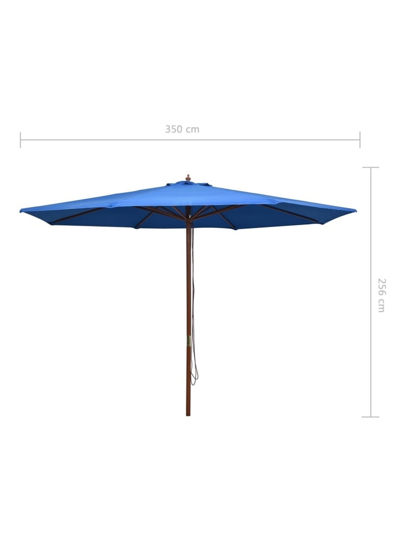 Parasol droit avec mât en bois Ø 350 cm - Bleu