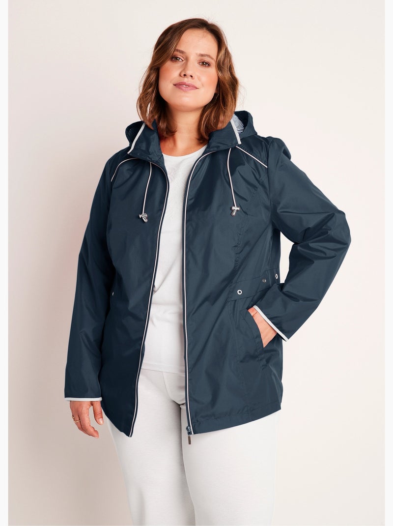 Parka courte zippée légère avec capuche - Bleu marine