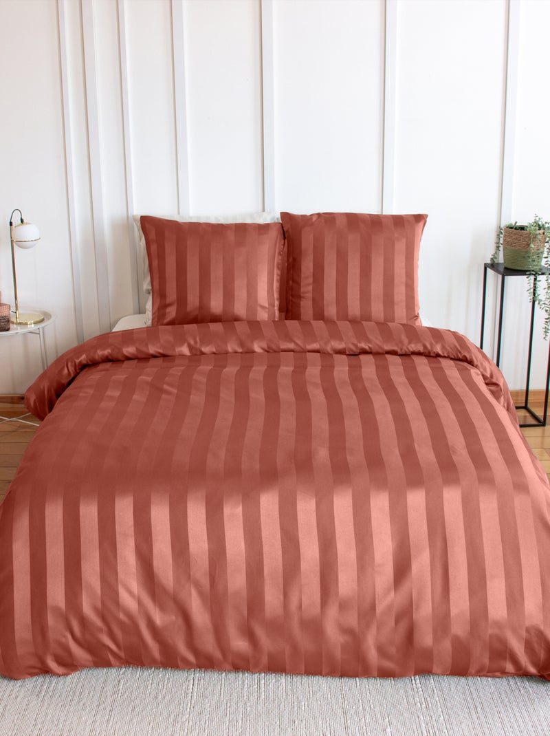 Parure de lit 3 pièces satin à fines rayures housse + taies - Orange