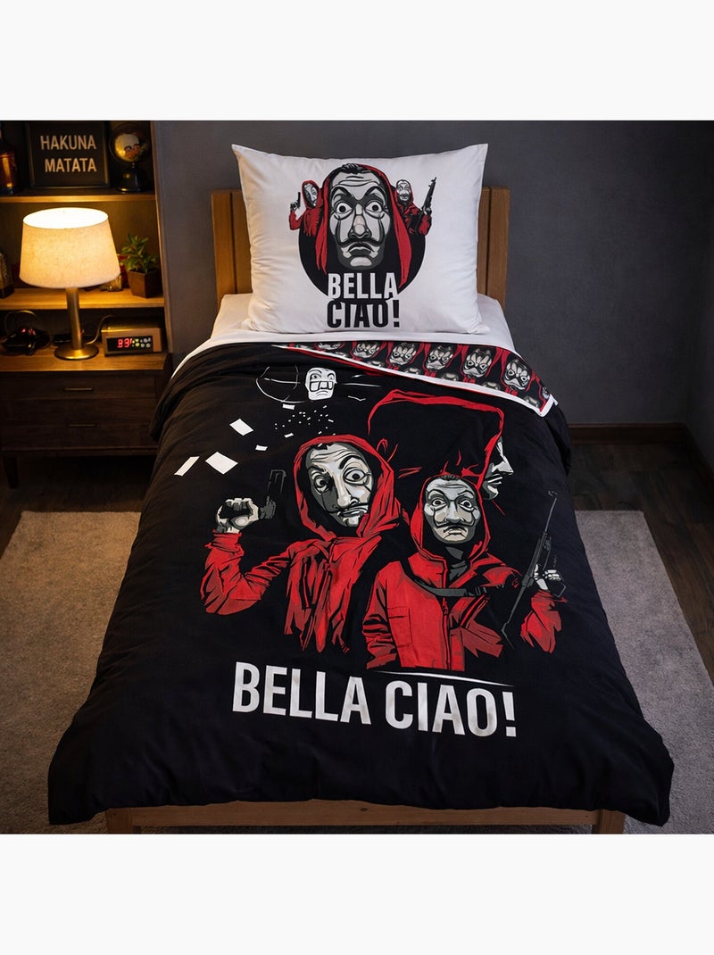Parure de lit enfant 100% coton imprimées - CASA DE PAPEL - Noir