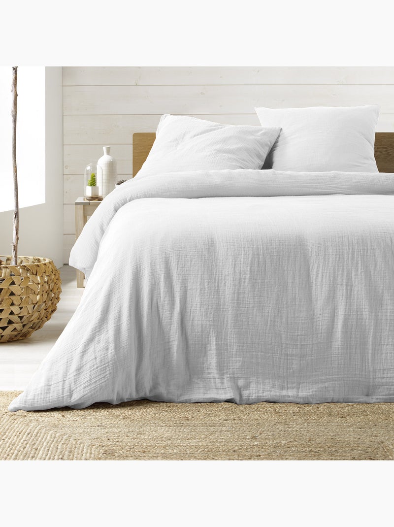 Parure de lit en gaze de coton + 2 taies - Angelia - Blanc