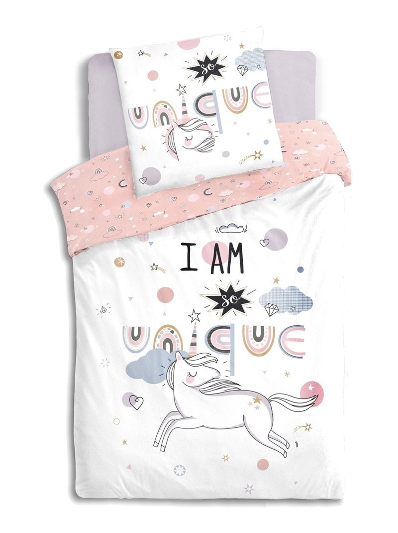 Parure de lit enfant licorne - 100% coton 57 fils/cm² - Blanc