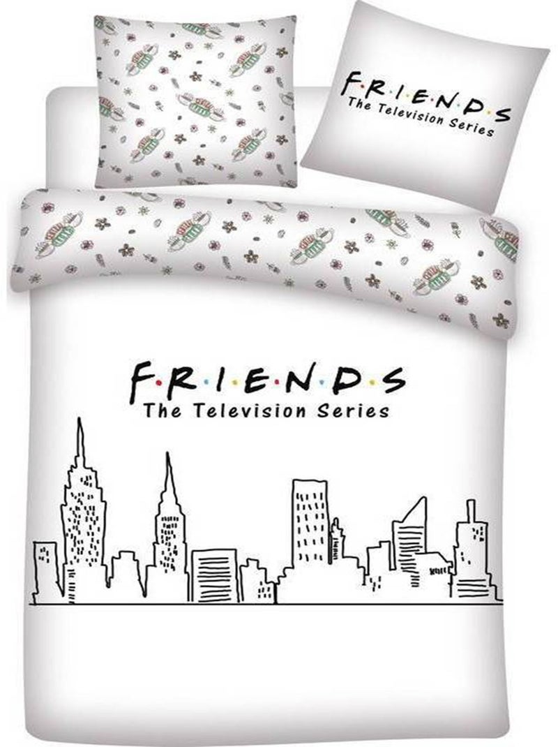 Parure de Lit Friends Imprimée Réversible Lit 2 Places, NEW-YORK - Blanc