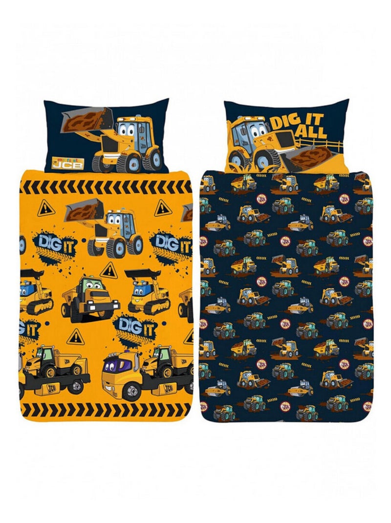 Parure de lit JCB Travaux et Camions- 135 cm x 200 cm - Jaune