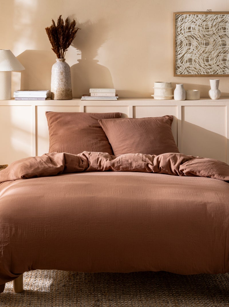 Parure de lit enfant unie en coton, GAZE DE COTON - Marron chocolat