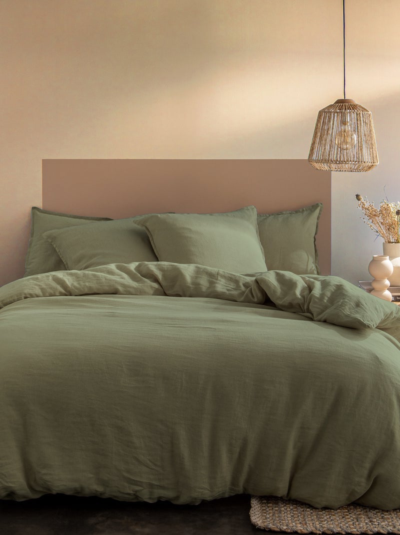 Parure de lit unie en lin Taies rectangulaires, PASSION LIN - Vert Sauge