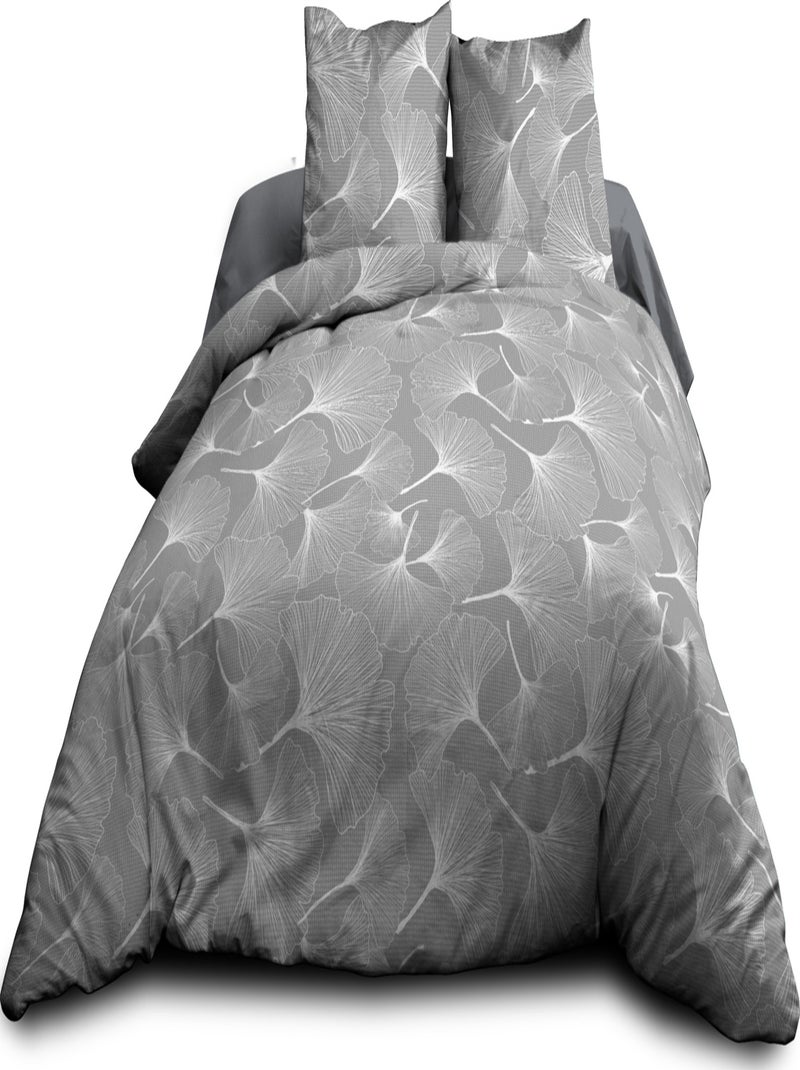 Parure Drap plat + drap-housse + 2 taies - Pur coton 57 fils - Biloba gris - Gris Blanc