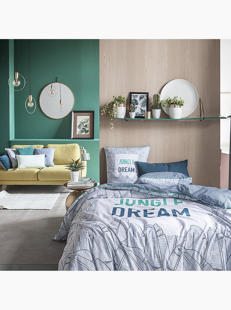Parure housse de couette 100 % coton jungle dream - Blanc