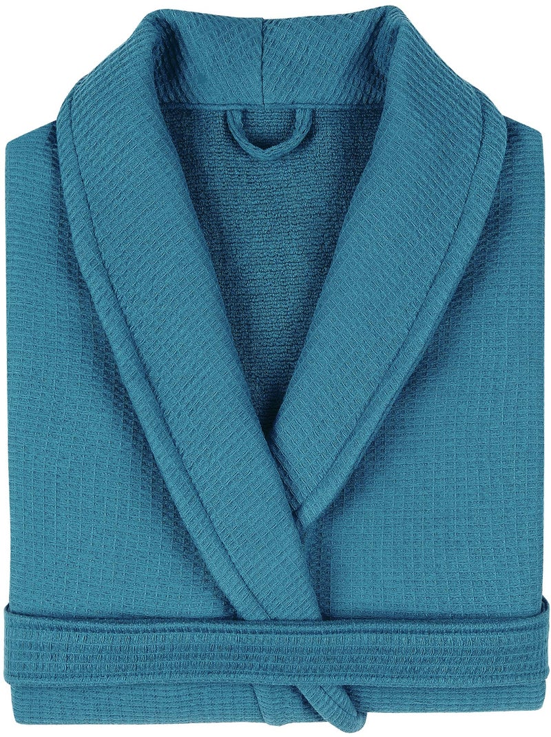 Peignoir nid d'abeille NATURAL col châle - Bleu canard