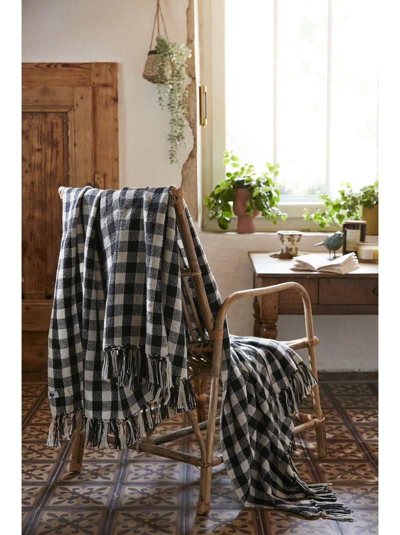 Plaid à franges - Pied de poule - Gabriel - Bleu