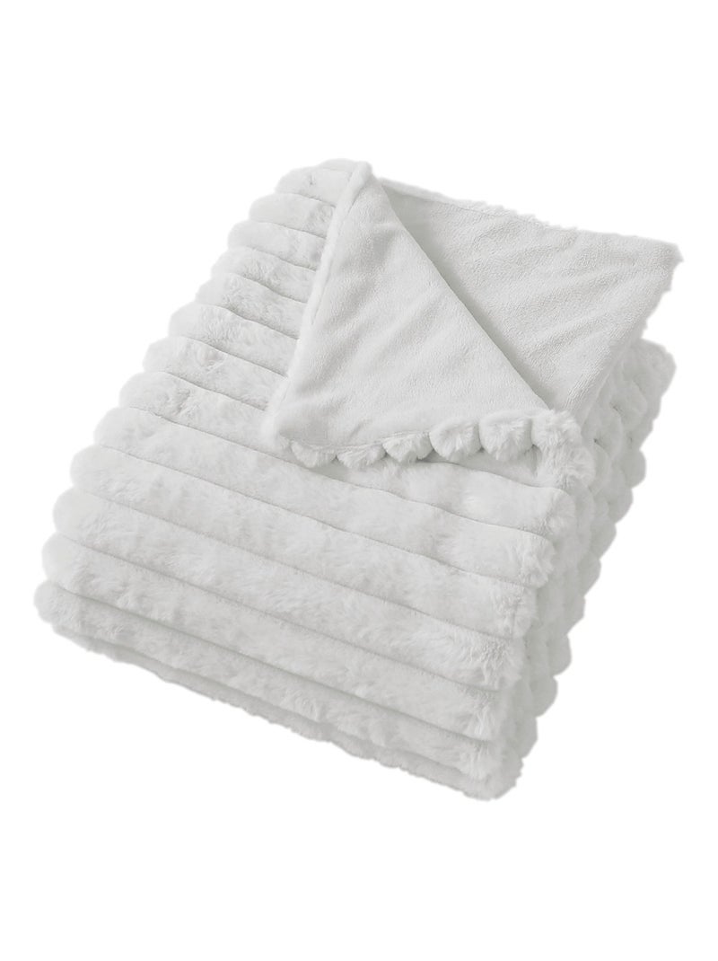 Plaid doux et flanelle 125 x 150 cm Mathis blanc - Blanc