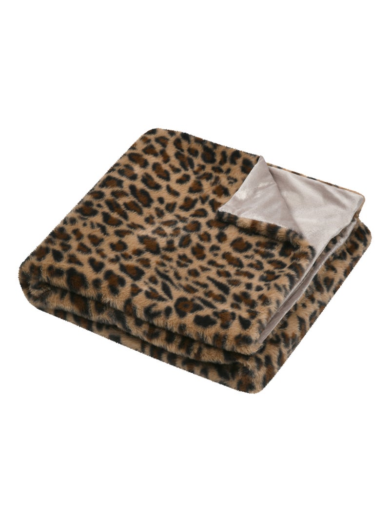 Plaid imprimé léopard - Effet fourrure - Marron clair