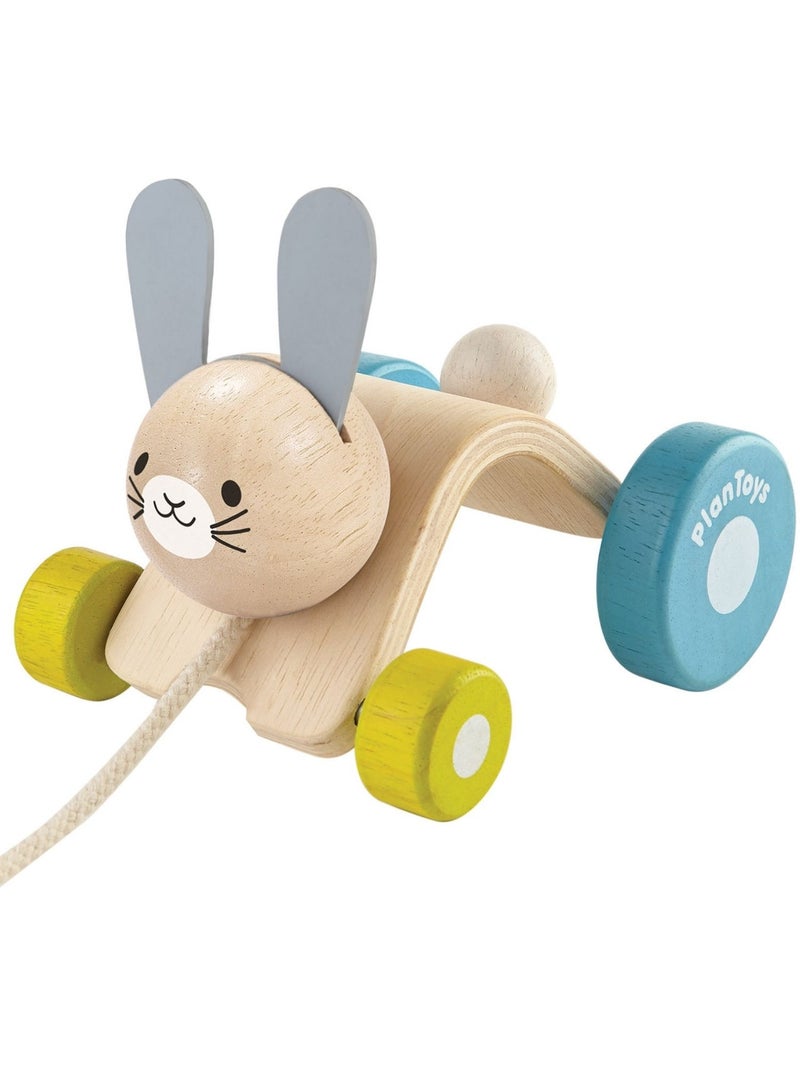 Plan Toys - Lapin sautillant à tirer - Multicolore