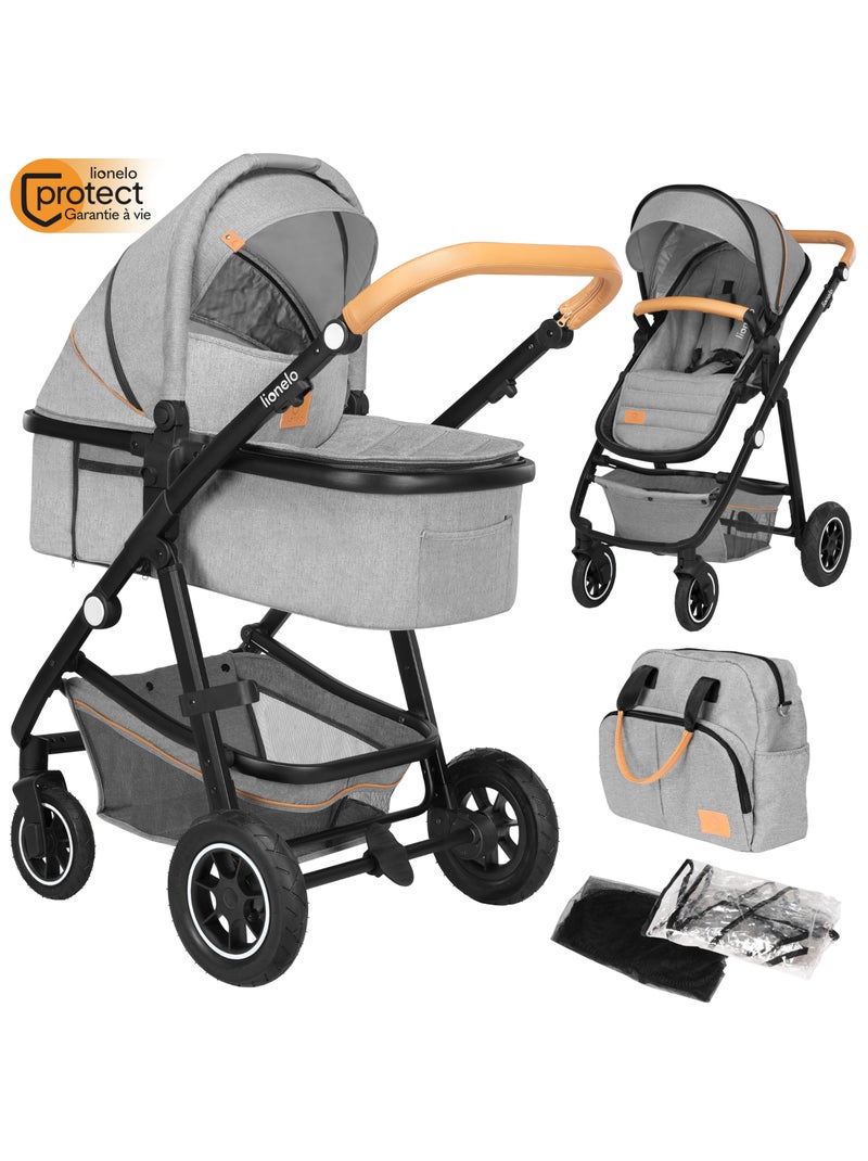 Poussette 2 en 1 LIONELO Amber - Pack poussette, Nacelle, Sac et Accessoires - Jusqu'à 22kg - Gris Gris