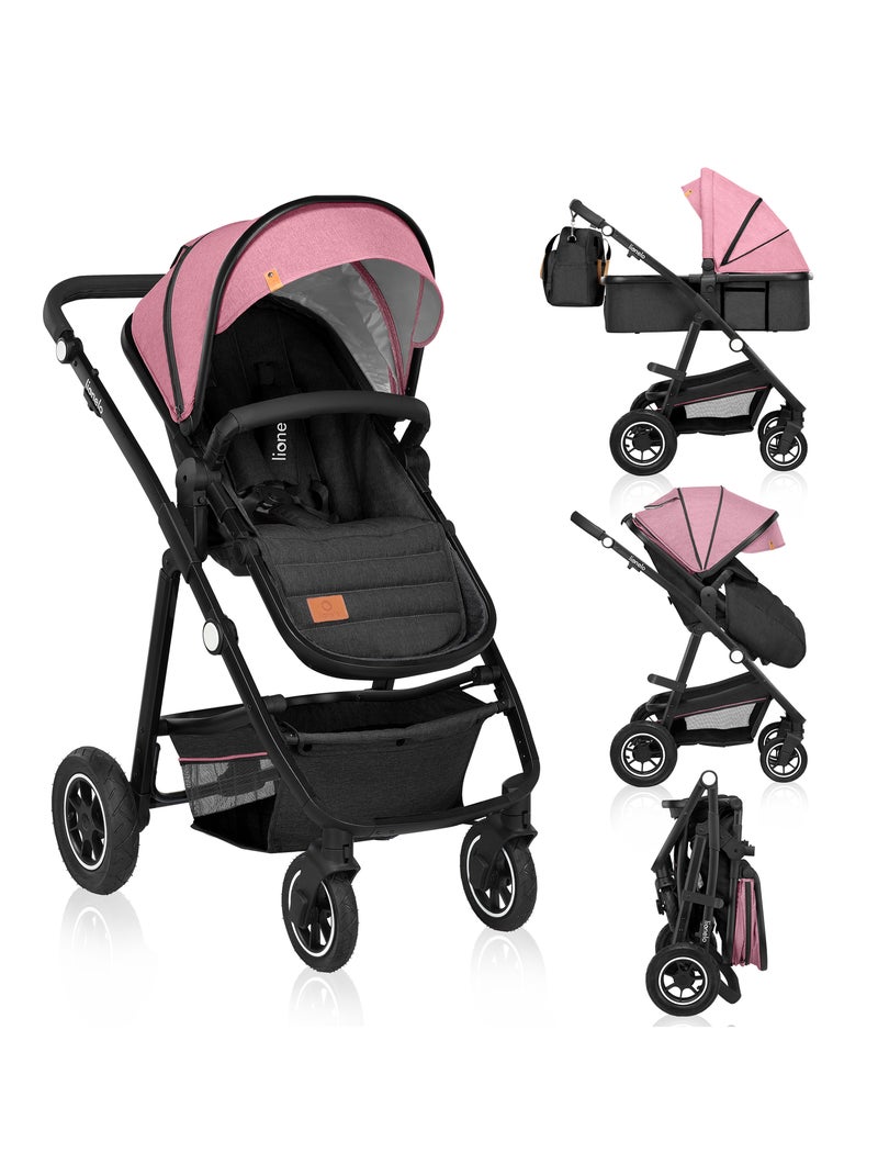 Poussette 2 en 1 LIONELO Amber - Pack poussette, Nacelle, Sac et Accessoires - Jusqu'à 22kg - Rose