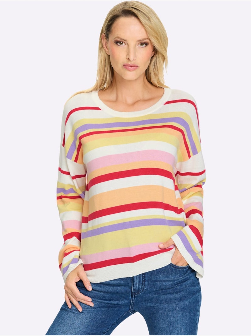 Pull à Rayures Rayures En Fils Teintés - Taille Standard - helline - Écru/Jaune